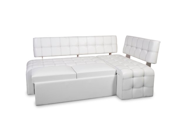 Кухонный диван Прага декорирован двойной отстрочкой в виде квадратов, в контраст с основным цветом обивки.