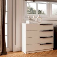 Комод «Айрон» — вместительный комод с четырьмя  вместительными ящиками — универсальное решение, которое подойдёт и для спальни, и для домашнего кабинета, и для гостиной. Эргономичные черные ручки контрастного оттенка делают эту модель более изящной. Комод идеально подходит для хранения белья, одежды, аксессуаров, важных документов, украшений и мелочей. Верхнюю крышку можно использовать как дополнительную полочку для лампы.
