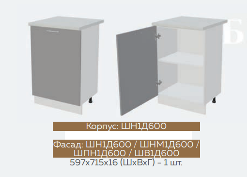 ШВ1Д600 Шкаф верхний с 1 дверью Графит софт