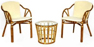 Комплект для отдыха «Akira» является эксклюзивным и неповторимым, так как его делают вручную методом выгибания и плетения.Не сомневайтесь в его надёжности и долговечности, ведь он изготовлен из гибкого и прочного ротанга, который может выдержать огромный вес, являясь при этом фантастически лёгким.