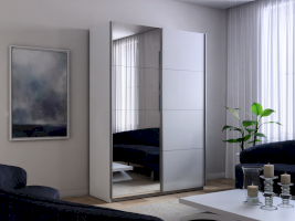 Серия «Прайм» отличается доступностью и функциональностью Навесные двери и лаконичная отделка фасадов создают прогрессивный дизайн. Подойдет тем, кто любит компактную и изящную мебель. Алюминиевые ручки и верхний ходовой профиль обеспечивают легкость и прочность конструкции. Многолетняя безупречная работа благодаря высококачественной немецкой фурнитуре Hettich. Прочная ПВХ-кромка толщиной до 1 мм защищает края от сколов и повреждений. Плавный ход дверей обеспечивает надежная система Hettich Top Line M. Дополнительно можно установить доводчики. Снаружи нет заглушек и винтов благодаря стяжечной системе крепления полок на флипперах, а корпус усилен эксцентриковыми стяжками. Навесные двери скрывают раздвижной механизм от глаз. Они надежно удерживаются в направляющих и не соскакивают. Каждая дверь поделена на 4 секции Секции расставляются в произвольном порядке, создавая новый дизайн фасада.
