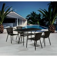 В составе комплекта: стол и 4 кресла. Высококачественная лоза из полиротанга коричневого цвета стойкая к любым атмосферным явлениям. Крепкий стальной каркас с полимерным антивандальным покрытием и отличным качеством сварки. Изделие сплетено вручную нашими мастерами под жестким контролем качества на каждом этапе производства. Лоза максимально приближена по рельефу и текстуре к естественному материалу. Идеально подходит для использования на улице и внутри помещения в любую погоду. Не боится воды, солнца и минусовой температуры.