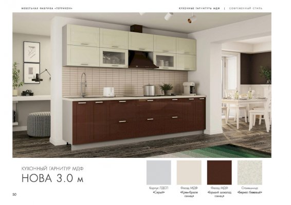 Модульный кухонный гарнитур Нова крем-брюле + горький шоколад глянец (Террикон)