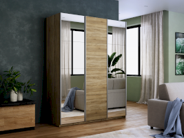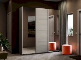 Серия «Прайм» отличается доступностью и функциональностью Навесные двери и лаконичная отделка фасадов создают прогрессивный дизайн. Подойдет тем, кто любит компактную и изящную мебель. Алюминиевые ручки и верхний ходовой профиль обеспечивают легкость и прочность конструкции. Многолетняя безупречная работа благодаря высококачественной немецкой фурнитуре Hettich. Прочная ПВХ-кромка толщиной до 1 мм защищает края от сколов и повреждений. Плавный ход дверей обеспечивает надежная система Hettich Top Line M. Дополнительно можно установить доводчики. Снаружи нет заглушек и винтов благодаря стяжечной системе крепления полок на флипперах, а корпус усилен эксцентриковыми стяжками. Навесные двери скрывают раздвижной механизм от глаз. Они надежно удерживаются в направляющих и не соскакивают. Каждая дверь поделена на 4 секции Секции расставляются в произвольном порядке, создавая новый дизайн фасада.