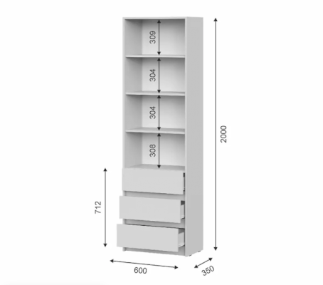 лаконичный, белый, с ящиками, высокий и глубокий, удобен для хранения и расстановки книг плюс хранение других вещей в комнате. прост в сборке - собирается за час максимум