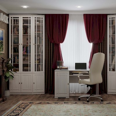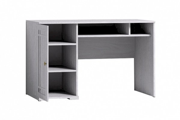 Классический письменный стол можно поставить в гостиную или кабинет. Широкая столешница на 587 мм позволит удобно разместиться с ноутбуком и бумагами. После работы их можно убрать на полку под столешницей. В боковой тумбе две полки, регулируемые по высоте. Их можно не устанавливать и в свободную нишу поставить компьютерный процессор. Высота стола - 765 мм - обеспечит комфортную работу человеку высокого роста.