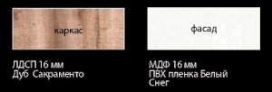 Каркас: ЛДСП 16 мм в декоре «Дуб Сакраменто»